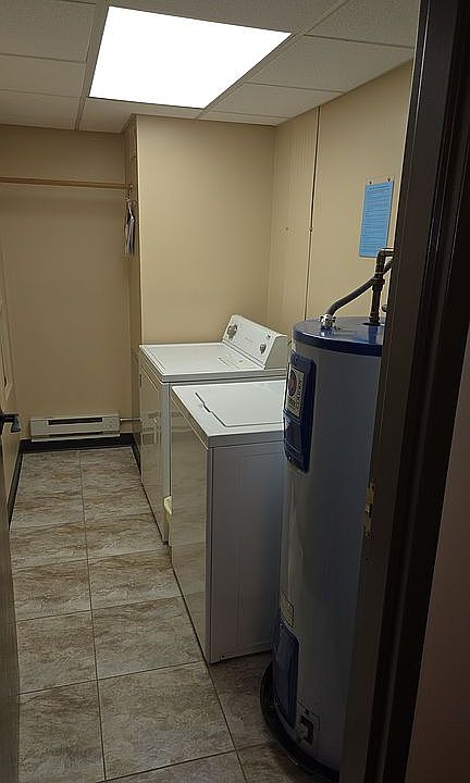 Heated marble floors in bathroom kitchen and entry. all closets have lights in them. Balcony door and all windows have been replaced, organizers and extra shelving in all closets, pullout shelving in closets and cupboards, extra lighted cabinets in bathroom and bedroom, heavy oak Trim and crown molding in all rooms and doors, built in Microwave, double stainless steel sink with garbage disposal, under cabinet lights. Some furniture and TVs to go with the sale. A/C and programmable thermostats with baseboard heat. Heated ground level parking. very well kept unit and very clean, quiet building that is updated in all halls and entryways. laundry rooms and garbage chutes on each floor. Secured building and garage. Electric Bill for heating and cooling runs about $60 to $80 a month.