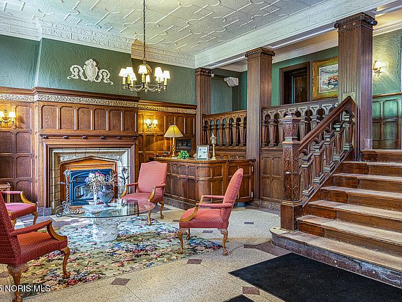Looking for historic beauty, natural light, and a view? This is the place! This expansive 2 bedroom 1.5 bathroom condo features all of the charm you are looking for such as vaulted ceilings, builtins, fireplace in the living room, fantastic hardwood floors and more. The kitchen has recently been updated and includes appliances. New windows in bedrooms and dining room. There is plenty of storage available with multiple closets in every room. Features of the building include laundry, a private courtyard, fitness room, community room, and events for owners to attend. All of the Old West End fun with out the maintenance! This condo does come with an EV parking space in the garage. Right down the street from the Toledo Museum of Art!