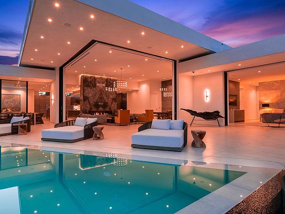 Set just below Beverly Park in Prime Beverly Hills, this exclusive modern compound offers explosive city and canyon views. Seemingly endless floor to ceiling doors vanish opening up to the breathtaking infinity edge pool, dramatic fire pit, outdoor dining area and beyond. Featuring 8,000 sqft of modern lines and immense volume there are 5 bedrooms, 7 bathrooms, a chef's kitchen, bar, several living rooms, a game room, gym, and home cinema with seating for 18. Two lavish master bedrooms boasting views, spa like bathrooms filled with stone and massive closets. The garage resembling a showroom offers space for up to 6 cars. Secured and operated by the new Control4 system, the smart home is personalized to your lifestyle providing unparalleled convenience.
