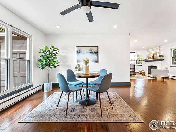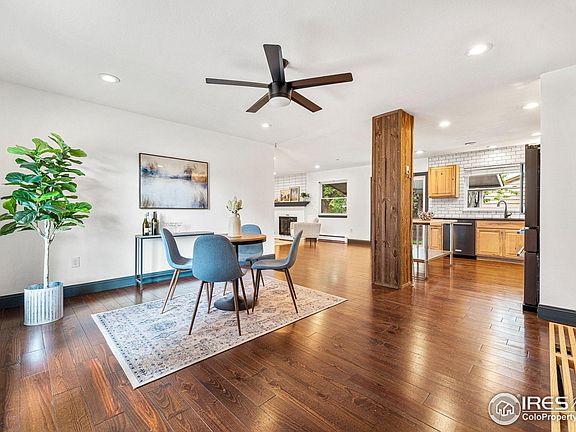 Tastefully updated Longmont home studded with towering trees, covered back patio that is perfect for hosting, and an open concept floorplan. Kitchen features stainless-steel KitchenAid appliance suite, custom subway tile all the way up the wall, and a Boos Block island. Rooms flow seamlessly together from the kitchen to the south-facing living space complete with a wood burning fireplace, built-in bookshelves, and entertainment zone. Sliding glass doors open out into your covered back patio that is just perfect for entertaining. Spacious primary bedroom has its own bathroom en-suite with a tiled shower, and handy built-in wardrobe organizer in the closet. Two additional bedrooms, with a full bathroom that has a skylight, updated lighting, and tile floors. Mature trees provide shade in the summer and a reminder of nature year-round. Walking distance to three parks, and a short drive or pedal to Lake McIntosh. Thank you for your interest and for taking a look!