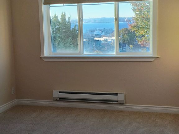Fresh paint, new carpet and appliances. Beautiful view of Mt. Rainier and Elliott Bay.