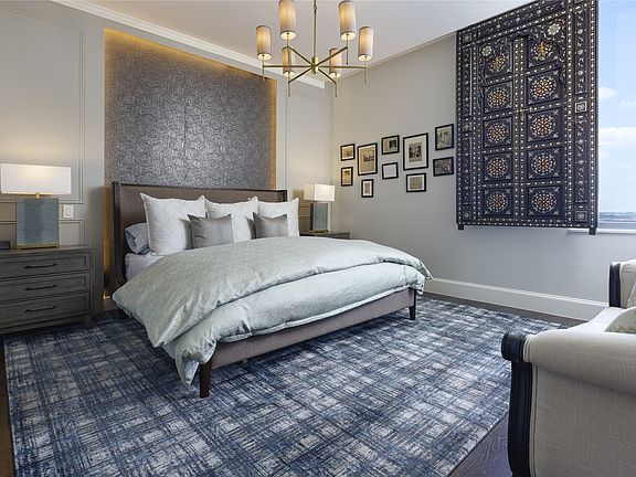 Rising high above the city on the 22nd floor of The House, a high-rise designed by Philippe Starck, this bespoke double-corner residence is a singular offering in Dallas real estate. Meticulously combining two premier units, masterfully renovated in 2021 & 2023, this expansive home with a study, private fitness area & fully enclosed butler’s pantry redefines elevated living with a focus on wellness. From the moment you enter, every element exudes refinement. Wide-plank hardwood flooring flows thru out, anchoring interiors finished in Philip Jeffries wallcoverings, custom lighting and an exquisite selection of quartzite & marble used artfully thru out the home. Designed for both daily comfort and grand entertaining, the true chef’s kitchen is equipped with dual workstation sinks complete with a hot-cold filtered water system & a 3-stage reverse osmosis filter, 2 Wolf ovens, 2 Sub-Zero refrigerators, 2 Esko dishwashers, wine fridge & custom wine racks. The adjacent butler’s pantry which is thoughtfully tucked away offers extraordinary prep space & storage. The primary wing of the home is anchored by a serene suite with custom parquet wood flooring, an expansive custom closet with built-in vanity, clad in quartzite, and a 1960s Murano glass Kalmar fixtures. The spa-inspired bath showcases quartzite counters, full marble finishes, and a striking Opal White quartzite accent wall. A Finlandia dry sauna adds a true wellness touch. Two additional bedrooms include custom closets and luxurious marble baths including one with a cast-iron free-standing tub. Integrated medicine cabinets add convenience. Subtle sophistication continues with Lutron dual roller shades UV and blackout with Wi-Fi enabled scheduling for effortless day-to-night transitions. Step onto either of two private balconies to take in panoramic views of the Dallas skyline and the Margaret Hunt Hill Bridge. 4 parking spaces—2 with dedicated EV charging stations & a private storage unit convey.