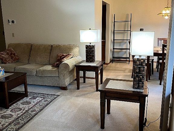 Ready to be your new home, this 2 bedroom, 2 full bath condo is a ground level home with easy access. This charming home features a covered patio and a spacious floor plan. Views of the mature landscaping add to the charm and comfort. The detached garage has over head storage with a pull down ladder, a great place to store seasonal treasures or recreation gear. Excellent location close to the university and shopping. Ideal for comfort & convenience. Inside, you’ll find a spacious living area that opens up the living room and dining room for a gracious open feeling. The generous primary bedroom features a double closet, offering plenty space for your wardrobe and more. The second bedroom also features double closets! Enjoy the fireplace for a cozy evening at home. The seller is including the on site furnishings, so this is truly a move in ready home.