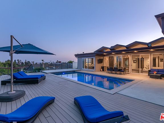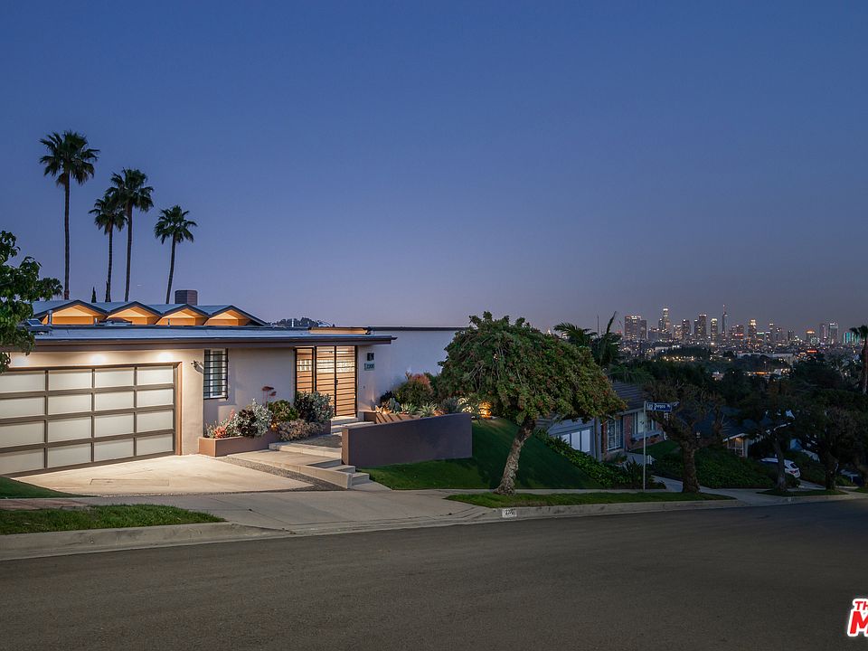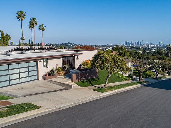 Located in the Los Feliz Estates, an exclusive enclave of mid-late 20th Century homes, this stunning single level circa 1965 Mid-Century modern L-shaped home has a generous modern layout, private pool and spectacular city views. Amazing architectural features with saw tooth roof line, triangular clerestory windows and sliding doors opening to the pool, sun deck and views. Gorgeous updated kitchen with stainless chef's appliances, separate dining room and showstopper of a living room with fireplace and stunning signature ceiling. Master suite with large closet and marble bath opens to deck and pool. Fourth bedroom or family/play room opens to patio. Great location on west side of Los Feliz nestled between Griffith Park and Laughlin Park. Available now vacant or with some furnishings.