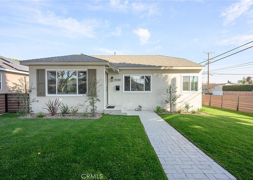 Stunning UPDATED 3 bed 2 bath home located in the desirable Artcraft Manor area of Long Beach situated on a spacious corner lot. This home has been beautifully renovated and offers a spacious open floor plan. The kitchen features custom new cabinets, sleek counter tops, full tile backsplash, stylish fixtures, new stainless-steel appliances, and center island offering additional countertop seating. Both the hall and primary bathroom have new vanities, and fixtures with custom tile work. The primary bedroom is spacious with a walk-in closet with custom built-ins, attached ensuite bathroom and new sliding door leading to the outdoor patio. Other upgrades include new HVAC system, upgraded electrical panel, new energy efficient windows, new doors, fresh interior/exterior paint, luxury flooring in the living room, dining room, bedrooms, kitchen and laundry, new plumbing, and light fixtures throughout, new ceiling fans in the bedrooms and living room, new tankless water heater, new garage door and motor. Other features include indoor laundry room, large linen closet with an abundance of storage space and two-car garage. The impressive exterior is perfect for fun and entertainment and has an enclosed front and back yard with new fencing, large covered patio with new concrete, firepit area and beautifully landscaped front and backyard lawn area with new sprinkler system.