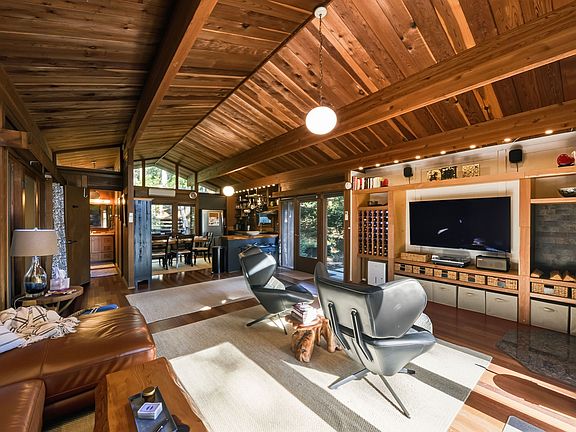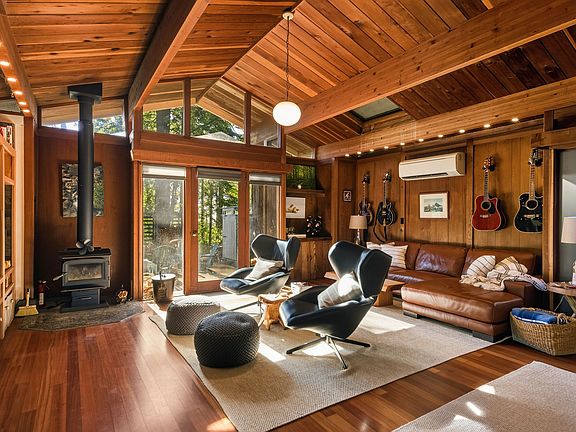Both the main home and the detached ADU are thoughtfully positioned to embrace the surrounding forest, with abundant natural light, tranquil surroundings, and peek-a-boo views of the Pacific Ocean that highlight the home's coastal proximity. Warm interior finishes and comfortable layouts create inviting spaces that feel grounded and serene, offering a true sense of retreat while remaining highly functional for full-time living.