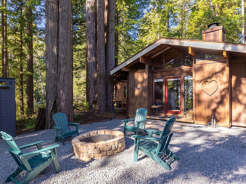 Outdoor areas invite quiet mornings beneath the redwoods and peaceful evenings surrounded by nature, with forest sounds and fresh coastal air setting the tone. Despite the privacy and seclusion, the home remains within easy reach of Highway 1, the Russian River, coastal trails, beaches, and nearby dining in Jenner and the surrounding Sonoma Coast communities.