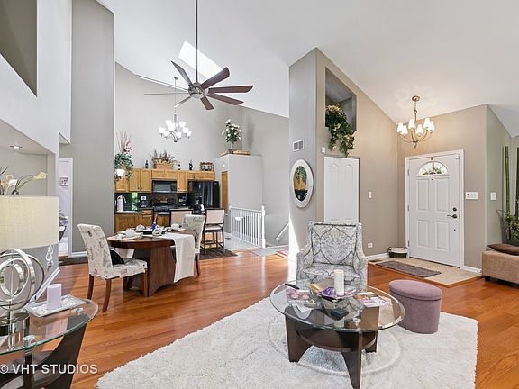 MULTIPLE OFFERS HIGHEST AND BEST DUE FRIDAY MAY 16 at 5pm. Don't miss this highly desirable 4-bedroom, 3-bath end-unit ranch townhome in beautiful Richton Park, featuring a 2-car attached garage and exquisite interior design. This impeccably maintained home offers a spacious, open-concept main level with stunning hardwood floors flowing through the living room with gas fireplace, formal dining room, and gourmet kitchen. Architectural details abound, including cathedral and trey ceilings throughout the main living areas. The kitchen is a chef's dream with granite countertops, a breakfast bar island, coordinating backsplash, and sleek appliances. The main level also boasts a generous primary suite with a walk-in closet and a luxurious ensuite bath complete with double sinks, whirlpool tub, and separate shower. A second bedroom, full hall bath, and access to a stamped concrete patio complete the main level. Downstairs, the fully finished basement offers an expansive family room with a wet bar and built-in surround sound - perfect for entertaining. You'll also find two spacious bedrooms (one currently used as a home gym), a third full bath, and a stylish office behind French doors. Located just minutes from shopping, the Metra, and interstate access, this home offers both convenience and comfort. A true gem!
