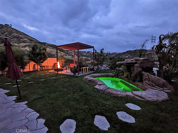 Discover a one-of-a-kind retreat in the coveted River Village community in Santa Clarita. This beautifully upgraded 2194 sq. ft. home offers unparalleled privacy and amenities, making it a true standout in the neighborhood. This is the only home in River Village with a full front and backyard (a $50k lot premium), complete with a spacious 2-car driveway. The fully landscaped grounds create your own slice of paradise, featuring a sparkling small dipping pool which can be converted to a spa/pool combo with custom rock-work and a breathtaking Waterfall Grotto, along with a matching fire-pit for those cozy evenings. The yard is lush with fruit trees including banana trees, and majestic palms, and the property includes a private side entrance, a beautiful patio, as well as a custom pergola with its own custom slab work, ideal for outdoor relaxation or entertaining. Once you step into this yard, you won’t want to leave! Inside, the home features modern upgrades and thoughtful touches throughout. Full wood patterned Vinyl plank flooring extends throughout the house, including a recently upgraded staircase. There are four spacious bedrooms and three elegant bathrooms, making it perfect for families or hosting guests. A versatile laundry room can double as a home office, and the house offers stunning panoramic views of the Santa Clarita mountains, providing a serene and beautiful backdrop from your windows. Additional features include recently refreshed exterior trim paint for added curb appeal! This home comes with a PPA solar system—full credit for extra power and a fixed low fee means big savings! This property is truly packed with features and upgrades, making it an extraordinary find in Santa Clarita. Its exceptional location, unique layout, and luxury amenities make it a rare gem in the neighborhood. Don’t miss this opportunity—this home won’t last long!