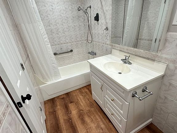 Downstairs one bedroom one bathroom unit with vinyl wood flooring, granite counter tops, ceiling fan in living room and bedroom. Recess and track lights throughout.