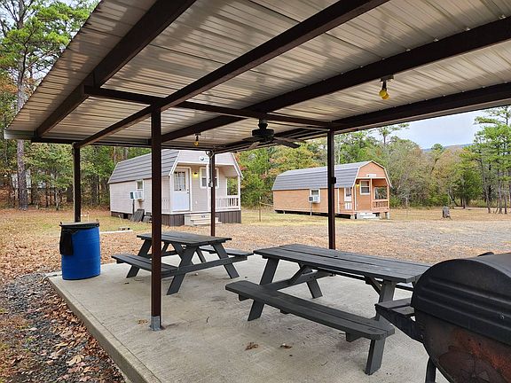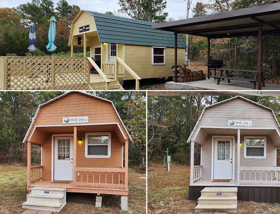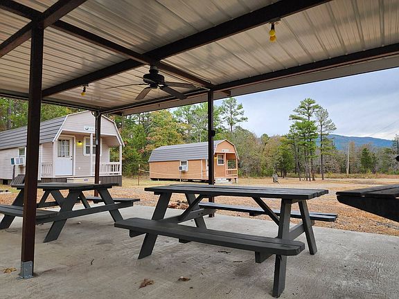 Location: This unique property is nestled in the heart of the Ouachita National Forest in a beautiful valley setting between Simmons Mountain to the North and the majestic Kiamichi Mountain Range to the South. The property is roughly 150 feet from the 1.5 million acre Ouachita National Forest, which provides hunting opportunities for whitetail deer, eastern wild turkey, black bear, wild hog and other small game as well as access to an impressive network of ATV and horseback riding trails that are operated and maintained by the US Forest Service. The property is located in the small community or Big Cedar, OK. Nearby towns include Hochatown, Broken Bow, Talihina and Poteau, which is the county seat. The Kiamichi River is less than 1/4 mile from the property. Broken Bow Lake, which offers some of the best fishing in Oklahoma, is only a short 45 minute drive away to the South. Sardis Lake, Cedar Lake and Wister Lake are only minutes away as well. The Talimena Scenic Drive is five miles North of the Cabin. The property is a 1.5 hour drive from Fort Smith, Arkansas and about 3.5 hours from Dallas, Texas. Services to Property: Electricity, rural water, conventional septic system, telephone line and LP gas delivery. Access: This property has legal and all-weather access by means of a county-maintained gravel road (Patterson Road). Land: The Bear Claw cabins sit on 1 acre (m/l) of land that is level to gently sloping and well drained. The area around the cabins is open and cleared to provide beautiful views of Kiamichi Mountain to the South and Simmons and Rich Mountain to the North. The North property line has frontage along Patterson Road. Income Producing Property: "The Bear Claw Cabins" have been used as a Short Term Rental Unit for 2 years. All furniture shown in the pictures is included in the list price, so the new owners can take over the business and income stream from future bookings upon closing. If you are interested in purchasing this cabin, you might consider booking it for a weekend stay to get a feel for the property and gain an appreciation for what the surrounding area has to offer. This property is conveniently located in the heart of the 1.5 million acre Ouachita National Forest Recreational area and provides direct access to many recreational opportunities including ATV riding, hiking, mountain biking, fishing and hunting. Cabin #1 : (12 feet wide x 26 feet long) - The cabin has roughly 312 square feet of heated and cooled living space with 1 large Bedroom/1 Bathroom and closet space. The cabin walls and ceiling are covered with rustic tongue and groove pine and the floor is covered with wood coloured laminate flooring. The cabin has a 4-foot-wide x 12-foot-long covered front porch. The cabin has a 7,000 Btu/hr window HVAC system. The bathroom area is 8 feet wide x 6 feet long and includes a shower, single vanity sink and toilet. Each room has a mini-frige, microwave over, coffee pot and toaster. All decorations, furniture and furnishings shown in the pictures is included in the list price. Cabin #2: Identical to Cabin #1 Cook Shack: (12 feet wide x 16 feet long) - This is a common kitchen area for both cabins. The walls and ceiling are covered with rustic tongue and groove pine and the floors are covered in wood colored laminate flooring. There is an open 16 feet x 16 feet deck area attached that is large enough for two tables. The kitchen area has two tables each with 4 chairs, refrigerator, electric stove, stainless steel sink and Formica counter tops. Outdoor Pavilion: (12 feet x 25 feet) - The Pavilion has concrete slab foundation and is constructed of 3" x 3" square tubing with metal roofing. There is enough room for two large picnic tables and a charcoal grill. There is an outdoor ceiling fan, electrical and lighting. Fire Pit Area: There is a fire pit in front of the Outdoor Pavilion.
