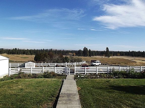 Charming 4 square home near Medical Lake & FAFB with 5 beds,2 baths & a LARGE county kitchen. Kit & baths have been updated to includ granite counter tops. New living rm addition w bay windows & raised ceiling, main fl sitting rm, vinyl windows, heat pump w AC, new flooring & a great sitting porch. Newer roof & a 4 car garage w oversizd drs. Barn built in 2009 w 40x16 ft lean to attached to a 44x100 Machine Shop, vinyl fencing,mud rm off kit. Water & elect to most out blds. Just too much to list, must see!
