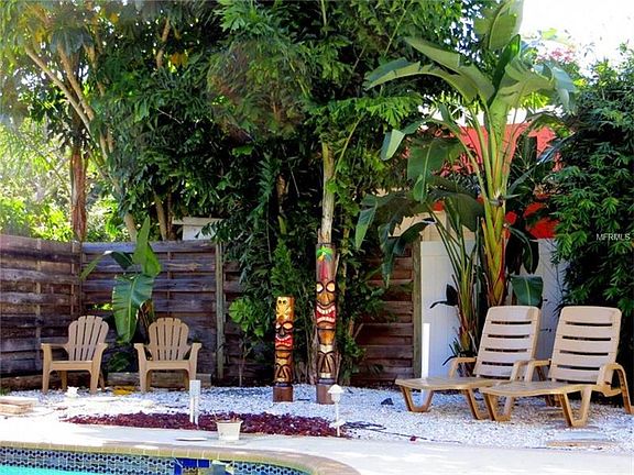 Tropical Pool Home conveniently located in historic West Bradenton. This charming 3 bedroom / 2 bathroom home is located on a large corner lot. French doors open to a private heated pool and covered seating area. The yard is beautifully landscaped and the backyard is fenced in (new fence in 2015) for ample privacy. New standing seem metal roof 2012, pool marcite, new pool heat pump and patio pavers redone 2014. Kitchen cabinets, countertop, appliances all new in 2012/2013. New enamel shower tub, cabinet, and tiles in master bath. Currently used as 2nd home and rented out to vacation guests. No HOA. Located only a short drive to Florida´s most beautiful beaches on Anna Maria Island. Sold AS IS.