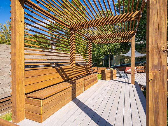 This home features a den, living room, fully functional kitchen, dining area, 2 queen bedrooms, laundry, and a stunning bathroom displaying a spa like vibe. If you're looking to spend some time relaxing outside, step out onto the terraced patio and enjoy the privacy. The patio will surprise you with the Pyro Tower which can be used as a grill, smoker, or chiminea! If you'd rather enjoy the view from above, head up to the massive deck area located on top of the home. A gas grill and plenty of seating is available for gathering with friends and family.