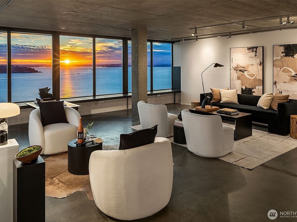 Penthouse views meet timeless design in this one-of-a-kind custom design by Jim Olson of (Olson Kundig). Expansive spaces with wrap around views of more than 2,800 sq ft. Exposed concrete ceilings and floors, steel countertops and custom steel ledges and lighting throughout. Open kitchen with gas cooking, Sub-Zero refrigerator, freezer, two temperature-controlled wine storage units and more. A massive primary suite with an oversized walk-in closet, dual sinks, glass enclosed rain shower and free-standing tub. A flex space for home office, guests or second bedroom. A recent upgrade includes a three-quarter bath for guests and a bar for entertaining. 2 parking, storage, on-site manager, pool, sauna and gym. An incredible opportunity!