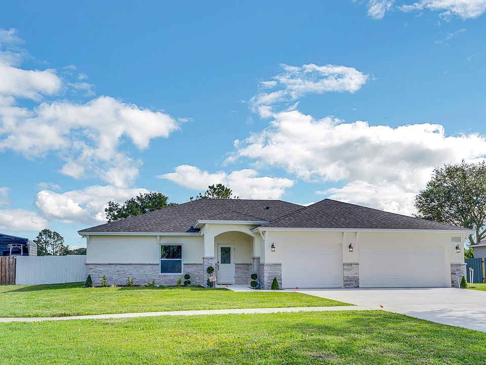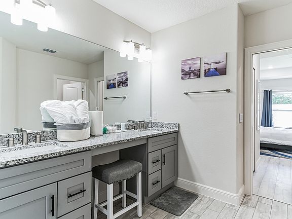 Spacious 3 bedroom, 3 and half bath fully furnished home with an OVERSIZED 3 car garage. Each Bedroom has it's own bathroom! Fenced in backyard, solid floors throughout, modern design, spacious, smart features, oversized driveway, Split floor plan, Covered Lanai, real wood cabinets, granite countertops, stainless steel appliance, cooktop, built-in oven, HIS & HERS closet in primary bedroom, large shower with frameless enclosure, dual sinks, energy efficient windows, LED lighting throughout, irrigation system ..... too many features to mention. A MUST see! Located inside the desirable Wedgefield Golf Community and minutes away from Downtown, UCF, Disney and Port Canaveral