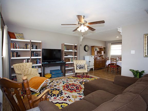This cozy casa is fresh on the market and ready for new owners! This adorable home features updated light fixtures, new flooring, a metal roof, covered parking, & a 600 sqft workshop with bay entry, electricity throughout, and alley access! This fabulous find is an excellent starter home and easy to maintain. Be sure to contact your favorite realtor today to schedule your viewing.