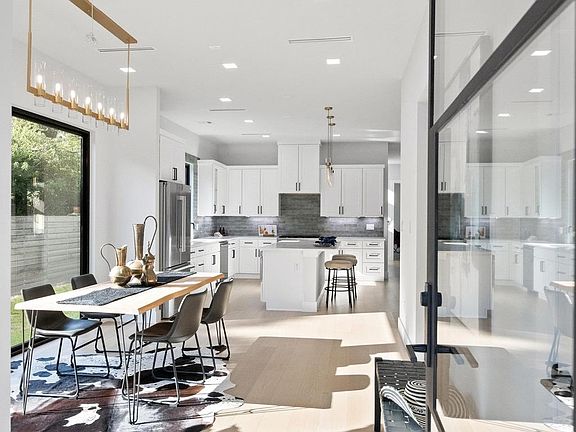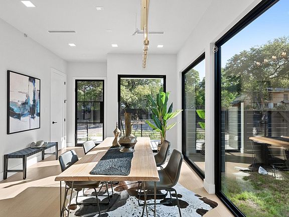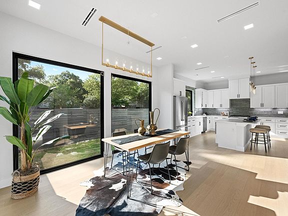 Experience elevated living in this newly constructed 4-bedroom, 3.5-bath masterpiece, ideally situated in the heart of Austin’s coveted 78704. Spanning 2,973 square feet, this thoughtfully designed residence blends modern sophistication with resort-style comfort. The main level hosts a spacious primary suite with serene views of the pool and sun deck. Its spa-like bath features a dual vanity, expansive steam shower with a soaking tub inside, and a generous walk-in closet. The living room is an entertainer’s dream, complete with built-in bookcases, a dry bar, recessed lighting, smart thermostat, and floor-to-ceiling sliding glass doors that blur the line between indoor elegance and outdoor leisure. The chef’s kitchen is outfitted with quartz countertops, a butler’s pantry, and seamlessly opens to the family room for easy entertaining. Additional highlights on the main floor include a stylish powder room, laundry room with utility sink, and extra storage tucked neatly beneath the stairs. Upstairs, you’ll find three additional bedrooms—two with en-suite baths—along with a versatile loft area perfect for a media room, playroom, or home office. Step out onto the rooftop deck and take in the treetop views and Austin skyline. Smart home features, refined finishes, and designer details throughout make this home a true retreat in one of Austin’s most vibrant neighborhoods.