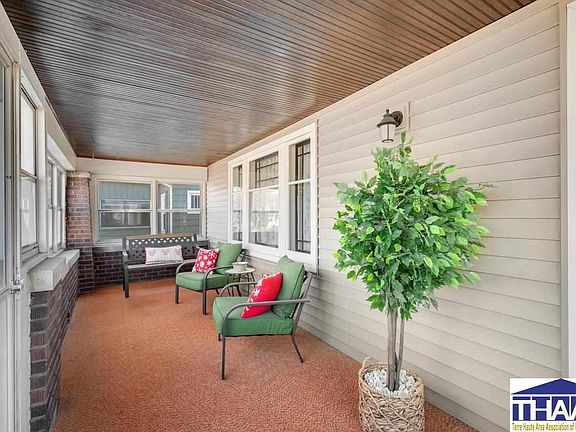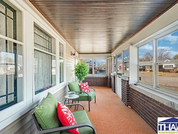 Welcome to this delightful bungalow nestled in the heart of Terre Haute's east side! Upon arrival, you're welcomed by an inviting enclosed front porch, perfect for enjoying moments of serenity. Stepping inside, you're greeted by the warmth of original hardwood floors leading to a spacious living room adorned with built-ins and a cozy fireplace, perfect for gatherings. The kitchen, featuring quartz countertops and a gas range, flows seamlessly into the formal dining area. Two tastefully appointed bedrooms provide comfort, while the updated full bathroom offers modern convenience. The hallway showcases built-ins, perfect for linens. Descend to the finished basement, where a cozy family room awaits with rustic accents and ample storage space. Outside, a fenced backyard and garage await on the corner lot, inviting you to enjoy privacy and convenience. With its blend of charm and functionality, this bungalow is ready to welcome you home. Contact an agent today to schedule!