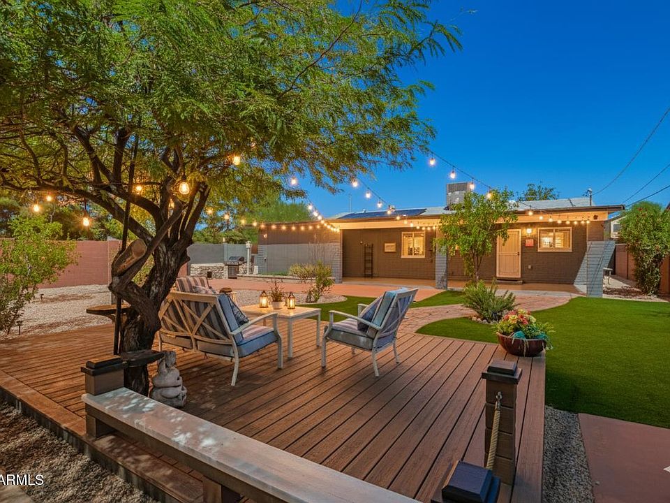 ALL FURNITURES and DECORATIONS included. Brand new sewer line connected to public. This charming 3-bedroom, 2-bath residence welcomes you with a side entry garage, an RV gate, and an inviting front patio. The tranquil living room shwocases a soothing palette, recessed lighting, blinds, and attractive wood-look flooring. Cook delicious meals in the eat-in kitchen, equipped with quartz counters, chic pendant lighting, a striking tile backsplash, stainless steel appliances, and a practical pass-through with a breakfast bar. The sizeable primary bedroom features an ensuite with dual sinks and a walk-in closet. Spend enchanting evenings in the lovely backyard, which offers a covered patio, pristine artificial turf, a storage shed, and a deck for weekend get-togethers. Make this gem yours now!