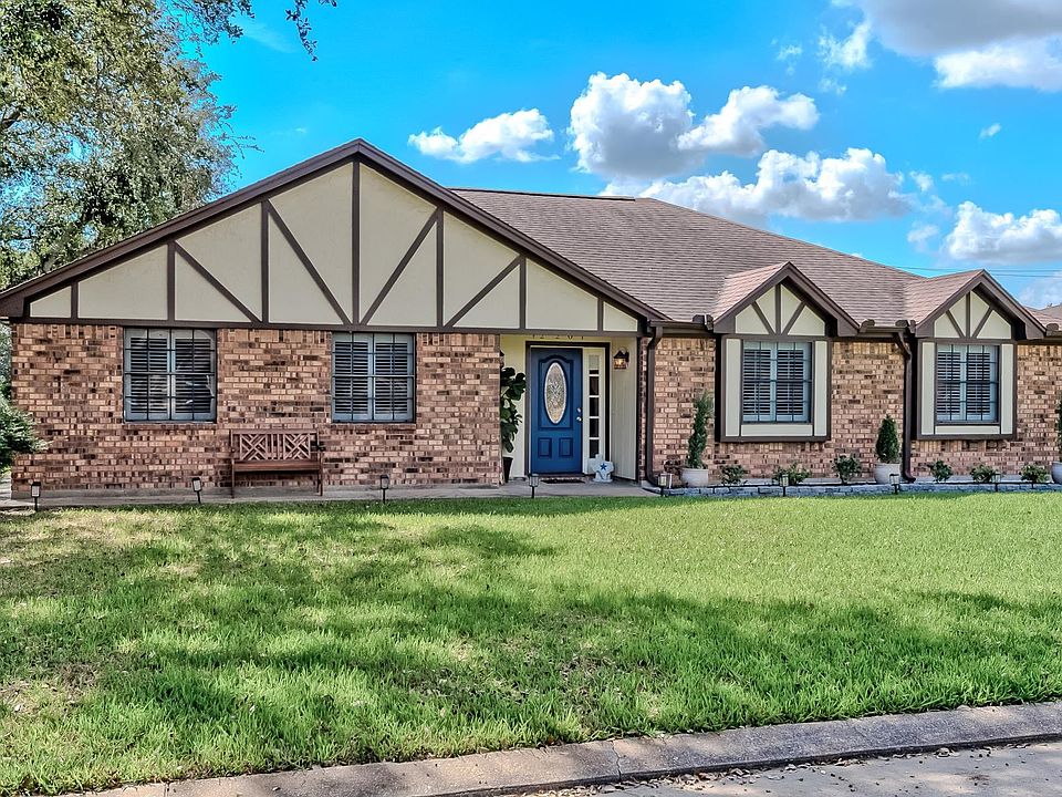 This beautiful, well-maintained home features vaulted ceilings with a wood beam, a beautiful brick fireplace, and an open layout that flows from the living room to the kitchen with white cabinets, granite countertops, and stainless-steel appliances. The primary suite offers a tiled shower, granite counters, and a walk-in closet. Enjoy the fenced backyard with a covered patio, perfect for relaxing or entertaining!
