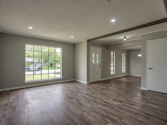 Welcome home to this updated,corner lot move-in ready, open concept beauty! Bring your pickiest buyers to this VACANT home. As you enter notice the huge living with exposed beam and wood burning, brick fireplace and large picture window. The kitchen offers stainless steel appliances, granite countertops, backsplash, inset sink and lots of cabinet storage. The property has an awesome floorplan with large bedrooms and a flex room with half bath with its own seperate wing on the home. This one story home has fresh paint and flooring throughout. Ensuite master has walk-in shower and dual sinks. Large backyard with open patio and lined with mature trees feeding into Denton ISD. Close to universities and schools.