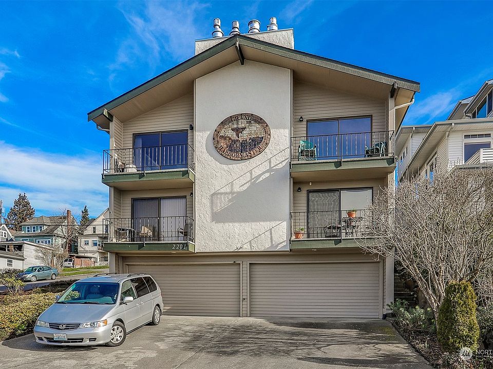 Beautiful and spacious 1600+ SQFT two bed/1.75 bath corner view home with western light exposure. This unit is flooded with natural light, warmth, and spectacular views. Enjoy an open living room/kitchen and dining area. This luxurious condo has been updated and is located in the desirable Grand Harbormaster Complex on historic Grand Ave. There is an excellent view of Puget Sound, the Navy Base, and more. This huge unit has an attached 2-car garage, a private view deck, a rec room, a large primary suite, a huge bonus room, and so much storage. The location can't be beaten! Well-maintained 4-unit boutique building w/ a healthy reserve.