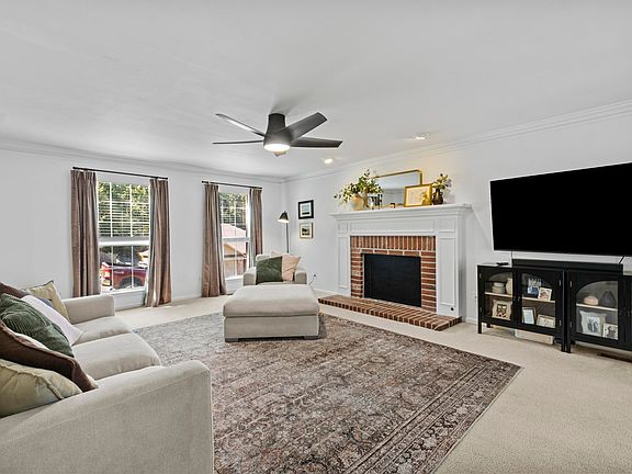 Massive primary suiteLaundry roomTwo walk in closetsBathtub and showerSpacious eat in kitchenStunning brick fireplaceFormal dining room
