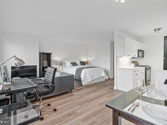 Experience refined luxury DC private residential living in this fully furnished, turnkey Carriage House condominium an exceptional and rare offering in the heart of Washington. This residential unit has been comprehensively upgraded and includes all utilities, Wi-Fi, and cable TV. The home features brand-new hardwood flooring, a designer bathroom with a state-of-the-art glass shower, an integrated A/V sound system with Bluetooth speakers, and a brand new luxury kitchen complete with a quartz countertop, elegant hand-selected modern subway tile backsplash, warm under-cabinet lighting, and 42-inch cabinetry. Storage is abundant with two extra-large closets and a walk-in closet. An executive work desk creates an ideal remote-work environment. Located just two blocks from the Foggy Bottom Metro station and within walking distance of Dupont Circle, Farragut North, and Farragut West, this condominium sits at the center of a vibrant neighborhood near the World Bank, IMF, the State Department, and The George Washington University Hospital. Building amenities include a 24/7 front desk, a rooftop pool with panoramic views of the National Cathedral, for relaxation and entertaining. Everyday conveniences such as Tatte Bakerty, Call your mother deli, Starbuck, Walgreens, CVS Pharmacy, and Trader Joe's are a short walk away. This pet-friendly building boasts an impressive Walk Score of 97. Move in with ease simply bring your bag. The elegant studio is outfitted with a new queen bed and memory-hybrid pillow top mattress, IKEA leather loveseats, a SMART LED TV with cable, coffee tables, a humidifier, nightstands, a modern computer desk, leather chair, area rug, LED vanity mirror, and new window treatments. Minimum lease term: 6 months. Additional Amenities: Bathrobes | Slippers | Iron & Ironing Board | Umbrella | in-room safe | Coffee Maker | Air fryer | Water Filters | Cooking utensils | Cutlery | Crockery & Chinaware Optional Services (Available for a Fee): Garage Parking | Maid Services | Linen Services | Concierge Services | Airport Transfers | In-room meal preparations by chef.