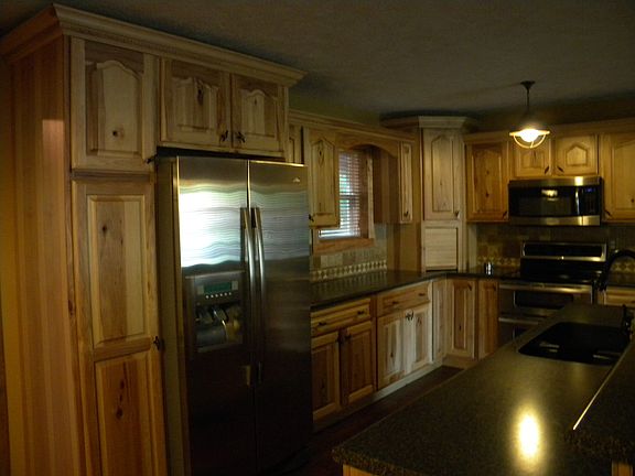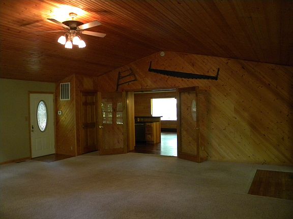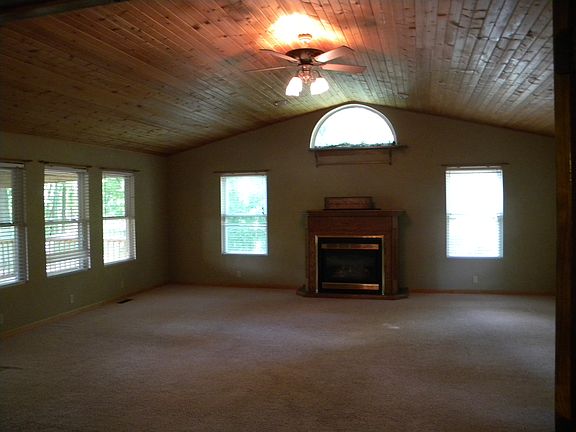 2,000 sq ft rustic lodge style home, featuring 3 bedrooms & 2 baths, gas fireplace, central A/C, very well insulated for comfort and low energy cost. Open concept living, dining and kitchen area and also has a large 24x24 family room. The kitchen is nicely equipped with all stainless steel appliances, including a dishwasher. Back yard is fenced and includes a covered deck. Located conveniently in town but with wooded lots beside and behind the house, it has the feeling of a more country setting. The house will lease for $950 per month, or for sale at $110,000.
