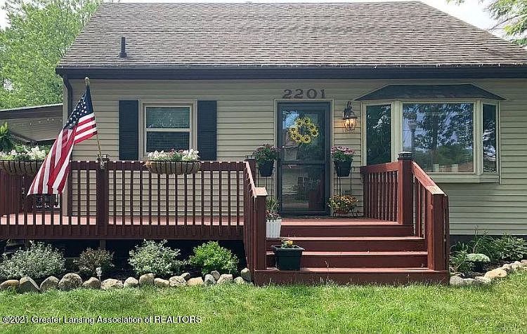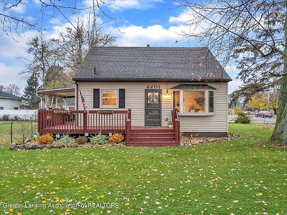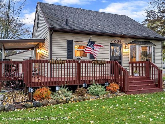 Welcome home to your move-in ready, well-maintained, cozy Cape Cod-style home featuring 3 bedrooms. The bathroom has a double sink vanity. There's a bay window in the living room and there's a French-style door leading to the covered deck. The yard is fenced and there's a large 2.5 car garage. Conveniently located near shopping and dining (some within walking distance). Located in the award winning Holt School District. Won't last long! Contact me for your private showing today!
