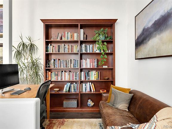 Discover this one-of-a-kind condo on the first floor of a historic church built in 1889, located in Denver’s sought-after San Rafael neighborhood! With its own private entrance, 14-foot ceilings, and 7-foot windows, this remarkable home blends timeless architecture with modern living. Enter through the original double church doors to find the expansive kitchen complete with high-end appliances, a large island with stone countertops and seating, a built-in hutch, and striking stained glass windows that make the space both functional and breathtaking. Continue into the sunken living room to find soaring ceilings adorned with belt-driven fans, natural stone walls, and light-filled spaces that highlight the church’s original beauty. Off of the spacious living room you'll find a tucked-away office/library nook with a built-in bookcase that offers the perfect work-from-home or reading space. Down the hall, the character carries through to the bedroom with high ceilings and stone details, while a walk-in closet and loft area provide ample storage. A stylish 3/4 bath with in-unit laundry adds everyday convenience. Beyond the walls of the home, enjoy the shared rooftop patio complete with lounge areas, fireplace, and gardens—an urban oasis in the heart of the city. One gated, exclusive-use parking space makes coming and going a breeze, and additional storage is available in the basement of the building for your convenience. With its stunning historic architecture, private entrance, incredible natural light, and unbeatable location near Denver’s best dining, parks, and entertainment, this rare condo offers a truly extraordinary living experience!