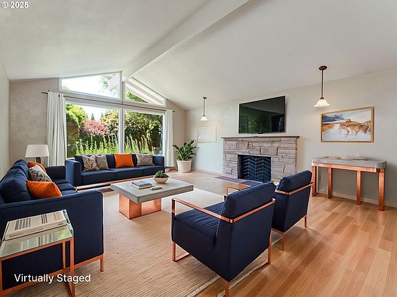 Charming Mid-Century Home nestled in the desirable Lakeshore Hills neighborhood. This beautifully maintained Cecil Poff-built home seamlessly blends mid-century charm with modern updates. Showcasing original craftsmanship, the residence features hardwood floors, updated kitchen flooring, and timeless architectural details throughout. High ceilings and expansive windows fill the space with abundant natural light, creating an inviting and airy atmosphere. The main level offers a spacious layout that includes a formal living room, dining area, kitchen & a convenient laundry room. Upstairs, the primary suite features soaring ceilings, hardwood floors, a generous walk-in closet, a private bathroom with a walk-in shower, and three oversized windows overlooking the lushly landscaped backyard. Adjacent to the primary suite is a versatile non-conforming 4th bedroom, ideal for guests, a nursery, or a home office. The finished basement is ideal for entertaining or recreation, complete with a built-in bar, flexible space for media or fitness equipment, a dedicated office, and an additional storage room. The 24-foot deep three-car garage includes 240v outlet ready for your EV charger. The home is finished with architectural asphalt shingle roofing and classic cedar siding. The beautifully landscaped fully fenced yard features mature plantings, dog run and privacy hedges. A long curved driveway offer seclusion and curb appeal, while a detached storage shed provides additional space for gardening tools, bicycles, and outdoor gear. Ideally located near top-rated schools, shopping, and I-5 access.