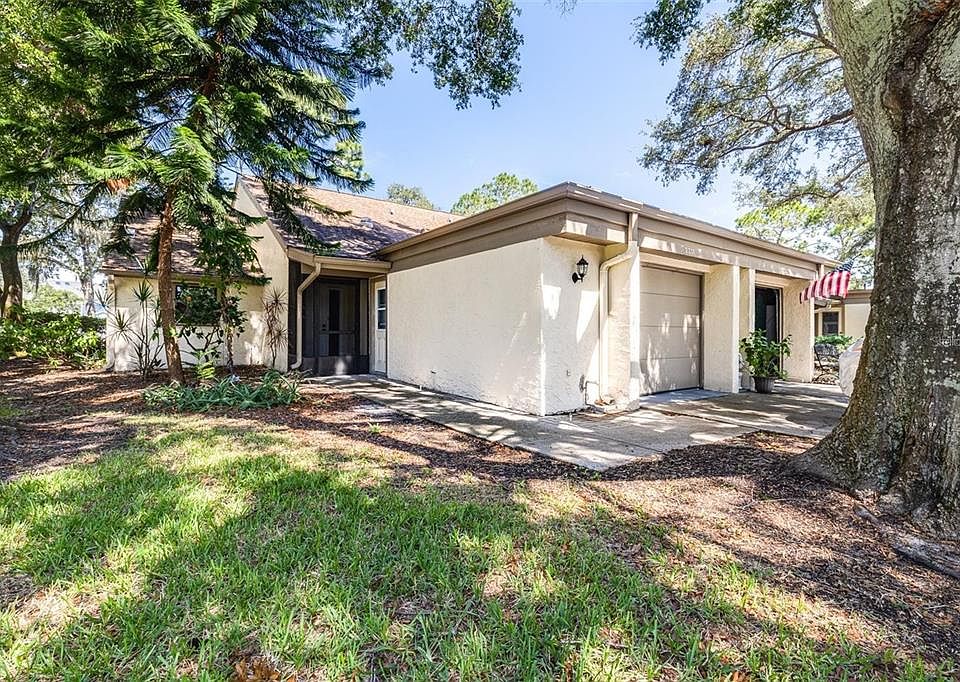 Priced to sell! NO HURRICANE DAMAGE sustained! Come see this meticulously maintained two-bedroom, two-bathroom 55+ Villa which displays the perfect blend of modern convenience and cozy comfort. This home, boasting an attached garage, and housing a NEW charcoal water filtration system is perfect for easy access and extra storage. The property features updated appliances (all about 3 years old) and upgrades throughout, ensuring a seamless blend of style and functionality. Upgrades include: new screened-in front door area, new shower doors, new window/door coverings, bathroom fans and lighting. The spacious living areas are illuminated by natural light, highlighting the contemporary finishes and fresh updates. Each bedroom offers a serene retreat with ample closet space, while the two well-appointed bathrooms provide a touch of luxury with their sleek fixtures and modern design. Ideal for anyone seeking a move-in-ready home with the latest amenities and a touch of elegance.