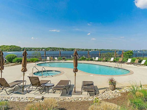 Waterfront Luxury TOP FLOOR Condo with sweeping Manasquan River views. Enjoy the sunrise from the Eastern balcony, sunset view from the West facing balcony. Well-appointed interior boosts gleaming hardwood floors, 10 ft. ceilings, decorative molding and built-in book shelves. Kitchen features glass back-splash , granite counter tops, stainless steel appliances, beautiful ceramic tile, and a butler pantry with a wine refrigerator. Spacious formal dining room features decorative molding & tray ceiling. Convenient underground heated parking garage with 1 dedicated space and private storage area. Enjoy the pool & hot tub while you watch the boats go by or enjoy the ocean breezes on the Riverwalk promenade. Incredible Riverfront Park is next door for additional outdoor strolling.