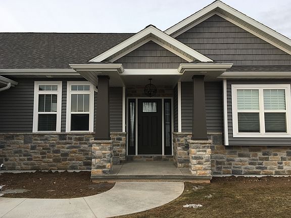 Custom built home in Hemlock Creek Subdivision (Town of Lawrence) A Tastefully designed home built 10/2017 with a monochromatic color scheme & a blend of rustic and contemporary accents and upgrades throughout. Open concept split bedroom layout, 10' ceilings in main living areas, custom ceiling feature, wide plank/hand scraped hardwood and porcelain flooring. Custom maple cabinets, large painted island and Quartz counter tops. Huge walk in pantry 10'x4'. Built-in office alcove leading to the ensuite master bedroom featuring vaulted ceilings, walk-in closet, His & Hers vanities, and custom tile shower. Split main bath has dual vanities and separate shower/toilet area. Conveniently located 1/2 bath with a separate laundry room. Finished 3-stall garage with extra wide 18' door, direct access to basement, floor drain and hose bib. Lower level is ready to be finished with 2 egress windows & roughed in for full bathroom. LED recessed lighting throughout, designer lighting & plumbing fixtures are just a few of the many upgrades. Stainless appliances (gas stove) are included and lawn is in! Buyers' agents are welcome. Call 920-615-0006 for more info.