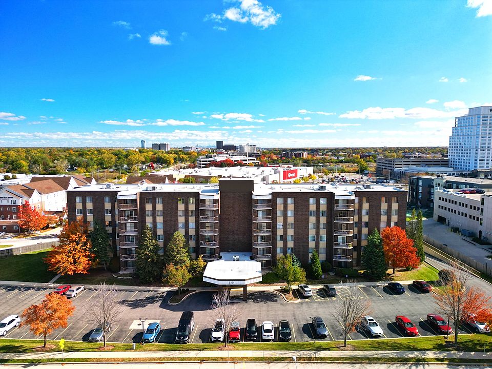 Welcome to Yorktown Condos and discover a rare top floor one bedroom retreat with great views. This spacious residence features an inviting renovated kitchen with new appliances, a large pantry, and a sleek modern design, great for prepping and entertaining. The open dining area flows seamlessly into a bright and generous living room perfect for entertaining or relaxing in style. The bedroom offers comfort and space with a walk-in closet and natural light. Step out to your private balcony and take in the serene pool views. Extra storage and convenient garbage chute are located just down the hall, with laundry facilities in the basement. The location is unbeatable. Walk to Yorktown Mall, Target, and countless dining and shopping options. You are only minutes from Oakbrook Center, Lifetime Fitness, and major expressways that connect you in every direction. This home includes one heated underground parking space plus ample outdoor parking. Enjoy resort-style amenities such as a clubhouse, outdoor pool, and tennis court. No rentals are permitted, reflecting a well-maintained community with a strong association and recent major improvements including a new roof, rebuilt balconies, and a resurfaced parking lot. For added value, assessments also include gas, water and heat. Fully renovated and move-in ready, this elegant condo features new flooring, fresh paint, detailed trim, recessed lighting, refreshed bathroom and a beautifully designed kitchen with a prep area that overlooks the living space. A rare find that blends comfort, style, and convenience! Welcome home to Yorktown Condos. IN UNIT W/D ALLOWED TO BE INSTALLED BY HOA!