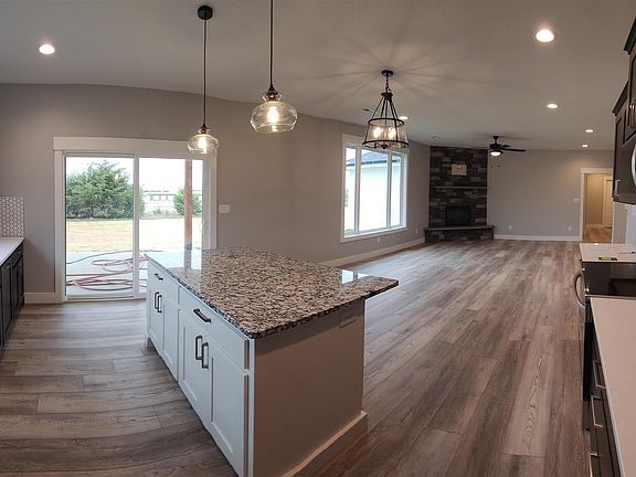 Generous 1517 sq ft of finished space in this three bed, two bath, three car garage. This new construction home is settled on approx half acre lot in Capricorn Woods #3. This home has many upgrades including Custom Wood Kitchen Cabinets, full size Onyx walk in shower with a seat, covered back porch, fireplace with a stone hearth and mantle. The bones of this home include a trussed roof system and boxing all the way around the exterior before the siding was installed. You are getting a lot of bang for your buck. Seller is a licensed RA in Kansas.