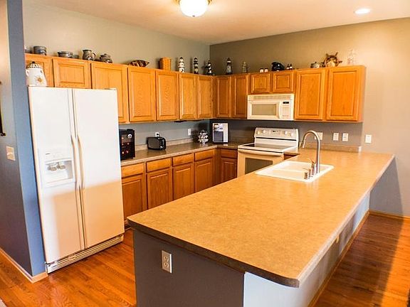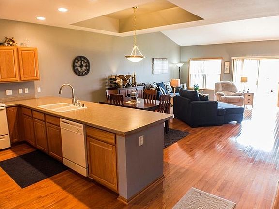 Don't miss this one! Sought after Hunters Ridge. Beautiful open concept, southern exposure condo. Large foyer / entry opens to huge kitchen / great room. Breakfast bar and dining area. Cathedral ceilings, fine hard wood floors, recess lighting, six panel doors and fireplace. Private entry and patio that overlooks large grassy area. Sunny office/den. Large master with attached bath and walk in closets. Main floor laundry. Attached 2.5 car garage. Basement workroom.