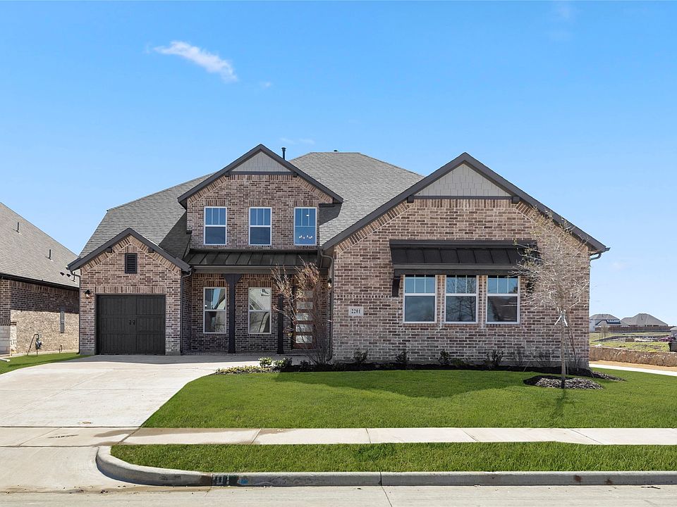 MLS# 20816229 - Built by RockWell Homes - Ready Now! ~ Reduced 5.25% fixed rate Rembrandt new home design offers a blend of elegance and practicality, featuring 4 bedrooms, 3 bathrooms, 2 powder baths, a home office, gameroom, powder room upstairs and complemented by a spacious 3-car garage. The stunning exterior boasts ACME brick, metal accent roofs, an 8-foot front door, a covered porch, wood garage doors, and a covered backyard patio, setting an impressive tone. Inside, the foyer with soaring ceilings and an open staircase leads to a versatile home office and a private guest suite on the first floor. The open-concept living and kitchen area is designed as the heart of the home, featuring a large center island, abundant solid surface countertops, GE stainless steel appliances, including a gas cooktop, built-in oven, microwave, and dishwasher. Additional kitchen highlights include 42-inch cabinets, upgraded flooring, an undermount sink, butler's pantry cabinets, a large walk-in pantry, a Delta faucet, and recessed can lighting. The living area, enhanced by multiple dual-pane energy-efficient windows, includes a gas fireplace, over-sized glass sliding door that opens to the covered patio and provides views of the backyard. The private primary suite, strategically located at the back of the home, offers dual vanity sinks with solid surface countertops, a freestanding garden tub, a ceramic tile shower with a semi-frameless glass enclosure, ceramic tile flooring, Delta faucets, linen closet & large walk-in closet. Upstairs, the home features an oversized gameroom, secondary bedrooms with a Jack and Jill bathroom, and powder bathroom. Additional features of the home include a full sprinkler system, a fully fenced private backyard, full gutters, ceramic tile flooring, dual-pane energy-efficient windows, 8-foot doors, energy-efficient HVAC, landscaping package & garage door openers, ensuring both style and functionality!