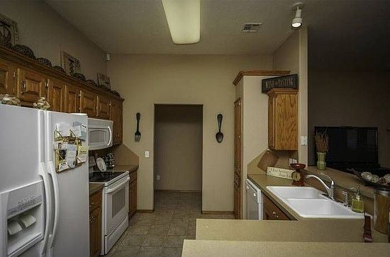 Corner lot in a great neighborhood! This home boasts an open floor plan with beautiful dark wood flooring, carpet in the bedrooms, custom blinds throughout and a backyard perfect for entertaining. The living room has a large gas, brick fireplace. The master spa has his and hers walk in closets with a jetted tub. This home is also set up with an alarm system and built in smoke detector system. There is lots of attic storage and a storm shelter built in to the two car garage floor. Appliances: dishwasher, disposal, microwave/convection oven, electric range, and refrigerator. This one is going to go QUICK! Will pay bringing realtor 2%