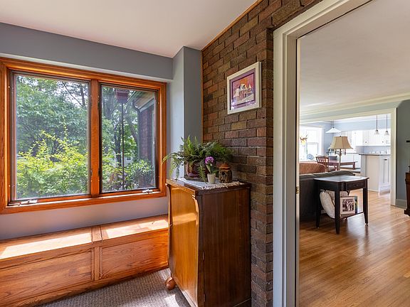 Nestled on a corner lot in Hunters Park, this lovely 4 bedroom home features a brick exterior, steel roof, bluestone foundation, a completely remodeled kitchen, 2 main floor bedrooms and a bath, hardwood floors, updated windows and so much more. Quality is found throughout this wonderful gem. The extensive gardens and landscaping set the stage as you enter through the large front entry with a new high end front door. The beautiful living room features a gas insert fireplace and a gorgeous surround and mantel, tons of natural light, and an inviting open layout to the dining room and kitchen. The dining room features booth seating and a large bay window, and the kitchen has ample storage and has been tastefully updated. You'll love sitting in the sunroom off the kitchen with all of the high quality windows and a patio door to the awning covered deck. Along with the 2 main floor bedrooms, there are 2 more bedrooms upstairs as well. The basement features a newly epoxied floor and the cleanest mechanical room you'll ever see, a 2013 boiler that's serviced every year, a den/office/craft room, and a 3/4 bath. There are two tuckunder garages with new epoxy on the slab and plenty of extra room for storage, as well as an upgraded asphalt driveway. There are two sheds, one of which is hidden under the deck. The new sewer hookup and gas line from the street will also give you peace of mind. You'll absolutely fall in love with this home, from the beautiful gardens to the charming historical character, amazing sunroom, open layout, and main floor practicality. This home has it all!