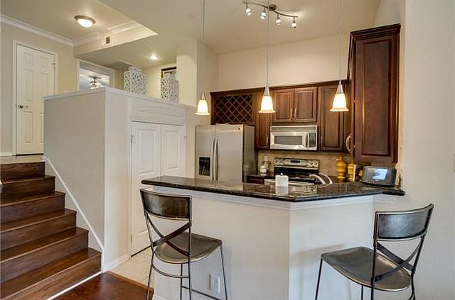 Seller to offer $2,500 towards buyer closing costs with acceptable offer. Wonderful opportunity to live in the gated Topaz Townhomes, conveniently located near Harwood District, Katy Trail, and American Airlines Center. This attractively updated unit is the largest floor plan and features beautiful hardwoods throughout with open layout of the den, dining, and kitchen, all on the second floor. The third floor features the master and guest bedroom, each with large bath and walk-in closets. Office-study area and full-sized washer-dryer closet complete the third floor. Also includes attached two-car garage with ample storage. All duct work cleaned in 2018. Nest Thermostat included. Community amenities: access to pool with entertaining area and fitness room. Unit also features two unassigned guest parking spots.