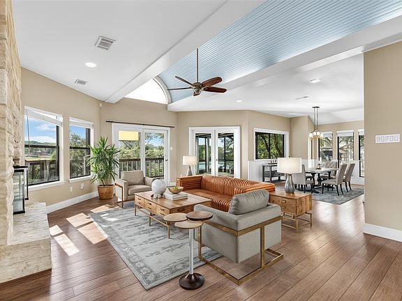 Nestled in the serene landscape of Spicewood, Texas, 22012 Briarcliff Drive is a haven for families seeking the quintessential lakefront lifestyle. This majestic 4-bedroom, 2.5-bathroom house, with a generous land size of .341 acres, offers both the tranquility of Lake Travis and the convenience of modern amenities. Picture starting your days in an expansive primary bedroom, complete with a cozy fireplace and sweeping views of the cove and rolling hills. The home's thoughtful layout includes an open floor plan ideal for social gatherings, a sun-drenched enclosed sunroom perfect for savoring your morning coffee, and a downstairs game room for additional entertainment. The community is a treasure trove of activities, boasting a full marina a stone's throw away at Briarcliff Marina, where boat slips, rentals, and jet skis await. Families can indulge in the outdoor life with a newly upgraded park, Pickleball courts, nature trails, and even a quaint 9-hole golf course with origins from music legend Willie Nelson. In the evenings, invite friends to gather around the backyard fire pit, relax by the water’s edge, and bask in the natural beauty that surrounds you. This home is not just a place to live; it's a lifestyle, complete with all the perks of lakeside living, including a new HVAC system, a powerful 12,000 BTU PTAC in the sunroom, and a 19 SEER variable speed heat pump upstairs. An elevator provides easy access to the water, ensuring that every family member can enjoy the lake with ease. 22012 Briarcliff Drive isn't just a house; it's a sanctuary where every day feels like a vacation. Welcome to your new lake home, where life is better by the water.
