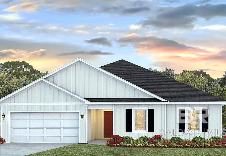 We invite you to tour 22012 Early Dawn Circle, a new home in Roberts Cove of Foley. This Cairn plan, 4-bedroom, 2-bathroom house encompasses 2,047 square feet and seamlessly connects the living room to the kitchen and dining areas. New homes feature 9' ceilings, elevated cabinets and trim package options. The kitchen is fully equipped with ample counter space, a central island, shaker-style cabinets, granite countertops, stainless-steel appliances, and a pantry for extra storage. The primary bedroom is generously sized, offering a walk-in closet and ensuite bathroom with a double vanity, shower, and soaking tub. Bedrooms two, three, and four are well-sized and share a conveniently located bathroom with a bathtub/shower combination. An attached two-car garage provides direct access to the house. The outdoor area includes a spacious backyard with a covered patio for dining and relaxation, and a landscaped front yard with a welcoming pathway leading to the front door. These homes are built to Gold FORTIFIED HomeTM certification, which may save the buyer on their homeowner’s insurance (See Sales Representative for details). Pictures of similar home may be included and may not represent actual colors and options in subject property. Buyer to verify all information during due diligence. Don’t wait, contact us today to make this home yours! Estimated completion of March 2026!