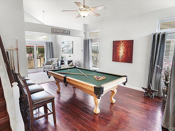 Stunning 4 Bedrooms, 3 Baths, 3 Car Garage with a Pool, Spa, Built-in BBQ on a Cul-de-sac Location in the Shadow Ridge Tract! This home offers beautiful hardscape, fiberglass double door entry with beveled glass, new vinyl dual pane windows throughout with the perfect front window for the Christmas tree, brand new remodeled kitchen with maple white custom cabinets, built-in refrigerator, lots of storage space, bay window, grey subway tile backsplash, granite countertops, under cabinet LED lighting, kitchenaide cooktop, LED recessed lighting throughout, stack stone fireplace, copper pipes, new exterior and interior paint, upgraded A/C and heater, engineered hardwood floors throughout the whole house besides kitchen, living room, entry hall, laundry room with sink and bathroom has grey porcelain tile, separate laundry room, whole house fan, 147sqft. addition to the back of the home, upgraded bathrooms, large master bedroom with sitting area, upgraded master bathroom with custom makeup vanity, dual sinks, custom shower with porcelain tile and teak seat, walk-in closet, ceiling fans, entertainers backyard with beautiful pool with a waterfall, spa with gas and solar heating, built-in BBQ with granite top and side burner, artificial turf and electric awning! Low HOA and no Mello Roos. This property is a must see!