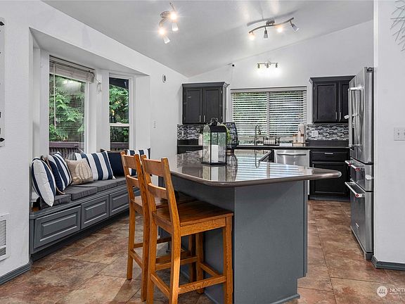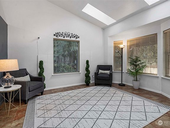 Absolutely fantastic place to live! Own this lovely home for just $2,020 a month with a unique opportunity to assume the seller's 3% VA loan. Light and bright living room with a bay window and 2 skylights in the vaulted ceiling. Kitchen boasts a custom oversized Island, quartz countertops, bay windows with sitting area & opens up into a cozy family room w/woodburning fireplace. Sliding door takes you to the large deck surrounded by mature trees that is perfect for entertaining w/privacy. The amenity-filled Clearwood Community features 3 lakes, 6 beaches w/picnic areas, bbqs, & boat ramps, 16 miles of walking trails, fishing, swimming, playgrounds, pickleball, tennis, basketball courts. Close to Elementary School, JBLM, Olympia & Lacey.