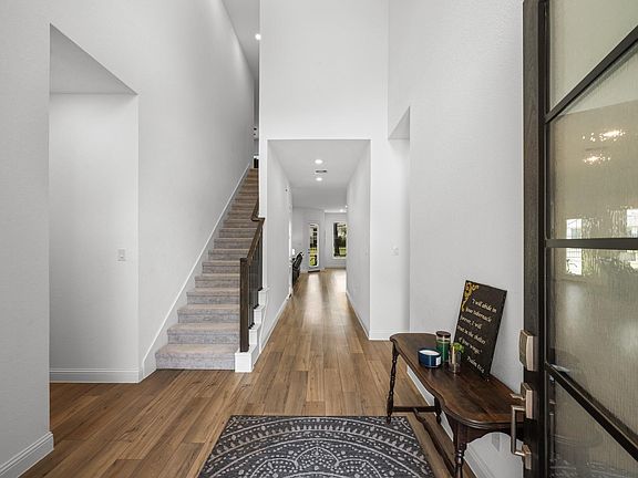 Step into this impeccably designed two-story home, nestled on a spacious corner lot and crafted for modern comfort and convenience. The bright, open concept seamlessly connects the kitchen, dining area, and family room, creating a welcoming space ideal for everyday living and entertaining. Enjoy outdoor moments on the covered patio, perfect for morning coffee or evening gatherings. The private owner’s suite is complete with a spa-inspired en-suite bath and a generous walk-in closet. A secondary suite near the entry provides flexible options for guests, a home office, or multigenerational living. Upstairs, discover two additional bedrooms and a spacious game room, ideal for a media lounge, fitness studio, or creative workspace. The backyard opens directly to a walking and jogging trail, adding a touch of nature. The neighborhood amenities include a Golf Course, Restaurant, Clubhouse, Water Park/Pool/Lazy River, Park, Playground, Tennis and Pickleball Court, Stocked Pond, and a Dog Park.