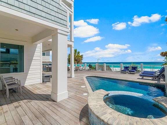 Showcasing panoramic views across 55 feet of beach frontage, 'Sea Castle' is a stunning coastal paradise which has been meticulously designed to host an unmatched experience at the beach. As one of the highest-producing vacation rental homes on the Emerald Coast, 22015 Front Beach Road boasts over $2.3M in actual rental history since 2022. This beachfront home has already produced over $430K in rental income YTD. The capacity for 36 guests and the rare finishes/features make 'Sea Castle' one of the most perfectly designed vacation homes in the area. Only five minutes from Rosemary Beach, this massive home boasts four levels of breathtaking Gulf views. The enormous pool deck serves as a one-of-a-kind beachfront entertaining space with its heated pool/spa & private beach boardwalk. The first level displays a pool-side entertainment floor with a pool table, foosball table & arcade gaming system. The first level also features a comfortable living room, kitchenette, oversized island & elevator access to all four levels. The second floor serves as the main gathering space with the remarkable kitchen, stunning living room & ideal dining area. You and your guests can also dine alfresco on the large beachfront balcony. The chef's kitchen features dual ovens, a six-burner gas Wolf range, two dishwashers, a wine refrigerator, and a commercial Sub Zero refrigerator. The striking island has bar seating for six and the dining tables have seating for sixteen. The first level features two spacious guest bedrooms, both designed with queen over queen built-in bunks along & ensuite bathrooms. The second level has two bedrooms, one being a queen over queen built-in bunk room with an ensuite bath. And the other on this level is a primary suite with a king bed and gorgeous ensuite bath. The third floor flaunts one of the most spectacular primary bedrooms ever created on the Emerald Coast. This primary suite has endless Gulf views to the West through large windows & sliding glass doors. The primary also has a comfortable sitting area, kitchenette & walk-in closet. The dreamy primary bathroom has unbelievable Gulf views. The 3rd floor provides another queen over queen built-in bunk room with an ensuite. And additionally, there is a primary bedroom with a king & an ensuite on this level. As you reach the 4th floor, you're treated to another unrivaled primary suite with soaring top floor Gulf views. This top floor primary has a kitchenette as well along with another bright and airy primary bathroom. The top level has a one-of-a-kind bunk room with 3 sets of queen over queen built-in bunks while also featuring an ensuite bathroom equipped with two walk-in showers. The property conveys fully-furnished with strong rental bookings already in place for the new buyer. Rental income performance, rental income projections, estimated expenses and net income projections are available by request. Enjoy an unmatched coastal lifestyle near 30A and own one of the top-producing vacation homes on the Emerald Coast!