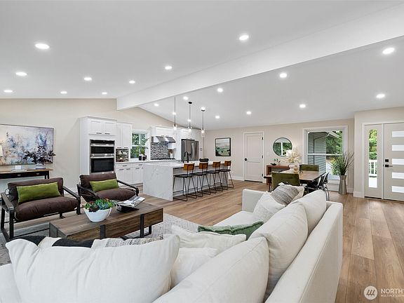 Total Remodel, virtually everything was touched or replaced. Enjoy a treehouse affect with views to the green belt and mature trees from most windows and three different decks. Bright, open great room with dimmable ceiling lights and pendants. This home is just asking for entertaining of your guests. Waterfall quartz island. Keep warm on cool days in front of two wood burning fireplaces faced with gorgeous tile and a quartz hearth. Enjoy cooking with a 5-burner gas cooktop and oven/microwave combo. Possible MIL space on the lower level. Bonus room for your gym or shop. New roof, concrete driveway, garage and front doors, plus all new doors throughout. Close to Canyon Park, downtown Bothell, and Lynnwood. Northshore Schools.